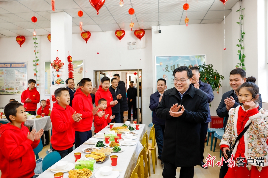 1月28日农历除夕,省委书记、省人大常委会主任胡昌升专程来到临夏州积石山县、东乡县,在集中安置点看望慰问搬进新居的灾区群众,在福利院同孤儿和老人一起吃团圆饭,鼓励灾区群众过上更加幸福美好的生活,勉励福利院的孩子们好好学习、天天向上、健康成长,代表省委、省政府向节日期间坚守岗位的工作人员致以诚挚的问候,向全省人民致以新春的祝福。新甘肃·甘肃日报记者 孟捷