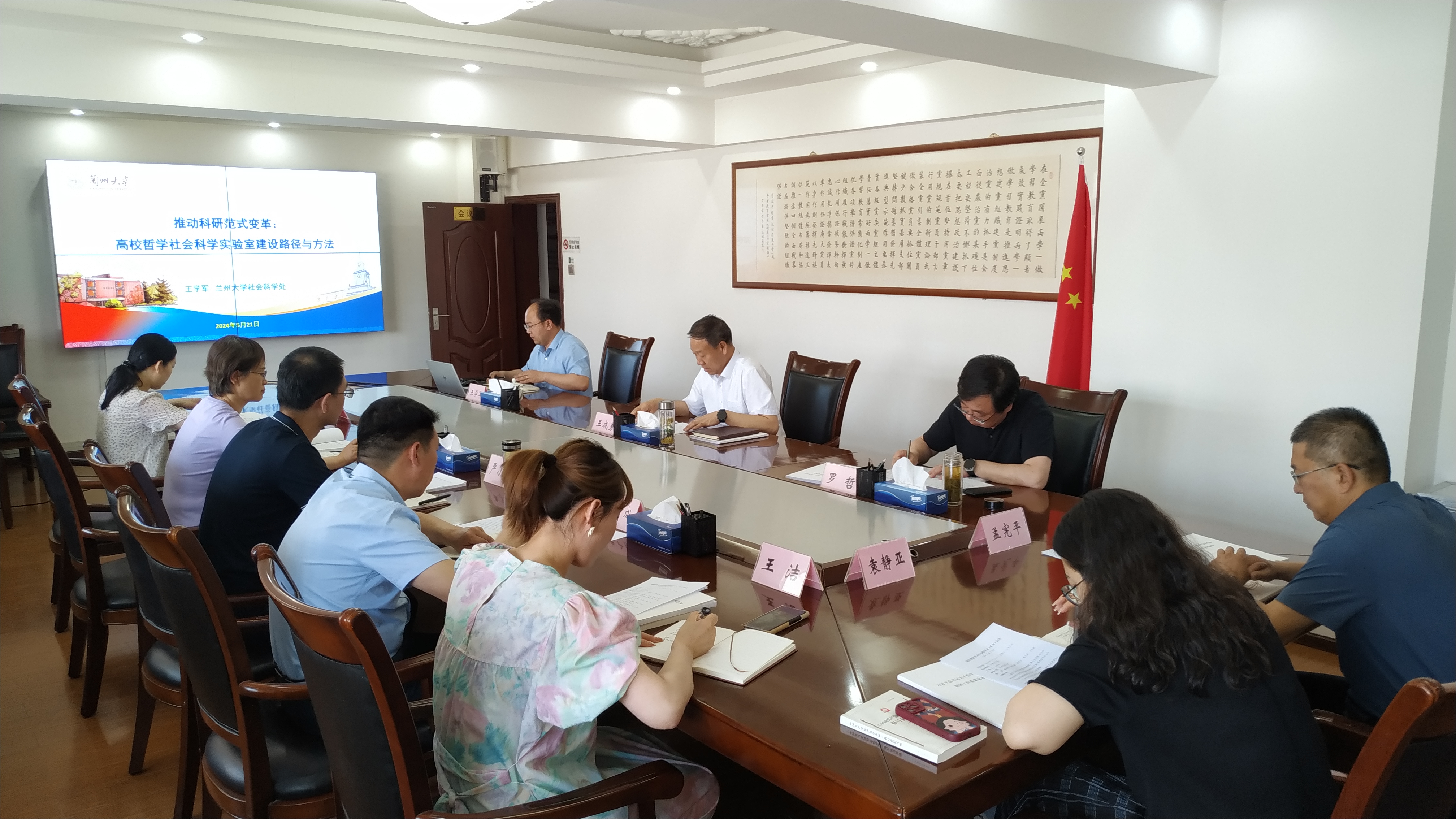 会上集体学习了习近平总书记关于哲学社会科学的重要讲话重要指示精神,邀请兰州大学管理学院教授、博士生导师,社会科学处处长王学军以“推动科研范式变革:高校哲学社会科学实验室建设路径与方法”为题,从高校哲学社会科学实验室建设背景、新时代高校哲学社会科学实验室定位和功能、兰州大学哲学社会科学实验室建设探索、新时代高校哲学社会科学实验室建设路径四个方面,对哲学社会科学实验室建设作了系统讲解。大家一致认为,讲座立足时代前沿,内容新颖、思路清晰、理论丰富、事例生动,为新时代社科事业创新发展提供了参考。